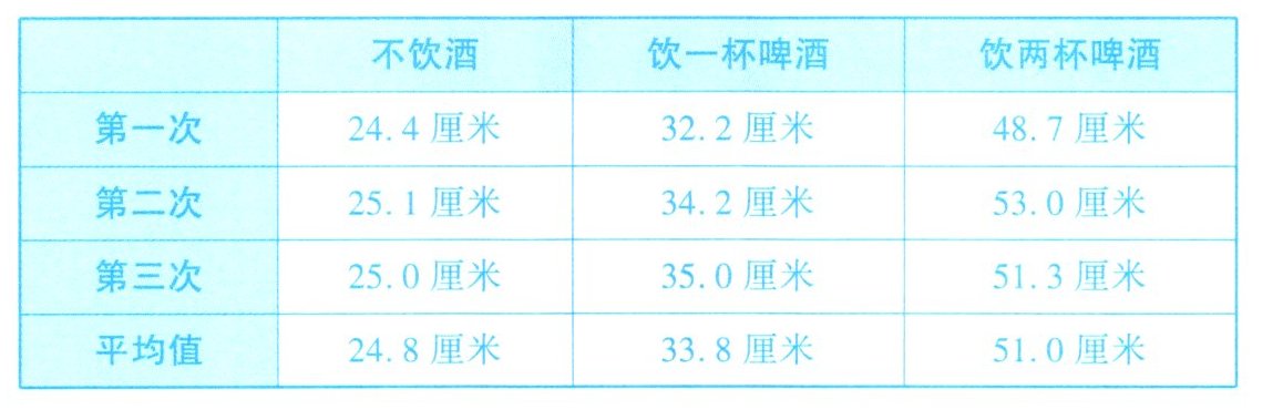 ,提高实验的准确性。(5) 实验结果表明:饮酒会影响人的反应速度,且饮酒量越大,测量值越大,人的反应速度会越