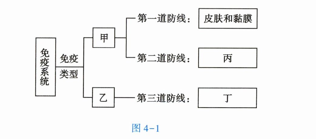 5. 我们生活的环境中,病菌无处不在,可我们大多数人能够健康地生活,这与人体的免疫系统密切相关。图4-1是人体免疫系统的思维导图,下列有关叙述正确的是【