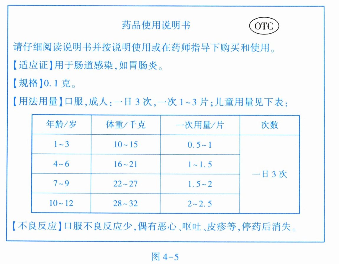 13. 下面是家庭药箱中某常见药物的说明书(如图4-5),下列相关叙述错误的是【