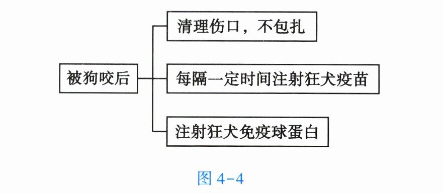 11. 狗是人类忠实的朋友,可以看家护院或者陪伴人们,但有时也会出现狗咬人等危险事件。某人被狗咬后的处理和治疗情况如图4-4所示。下列叙述错误的是【