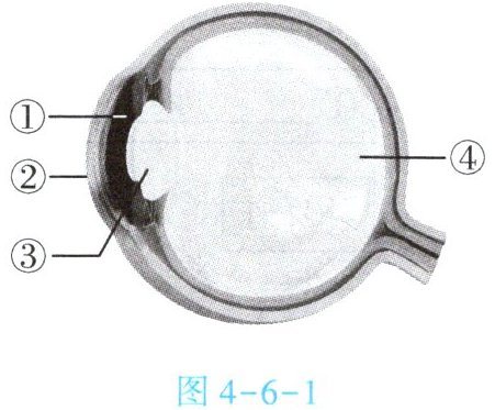 7. 《晋书·阮籍传》中描述阮籍在面对喜欢和不喜欢的人时,会作“青眼”和“白眼”,两眼正视,露出虹膜,则为“青眼”。人眼结构如图 4 - 6 - 1 所示,代表“青眼”的是 【