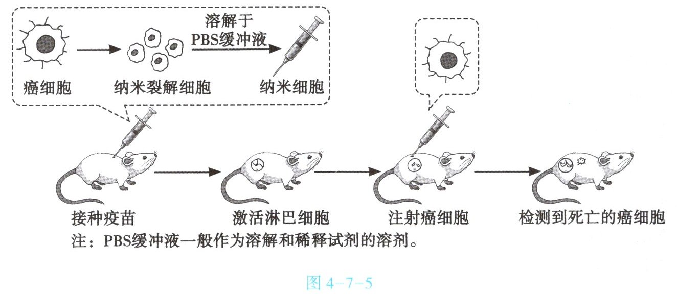 14. 研究人员利用癌细胞制备纳米疫苗和引发小鼠免疫反应的过程如图4-7-5所示,据图回答下列问题。