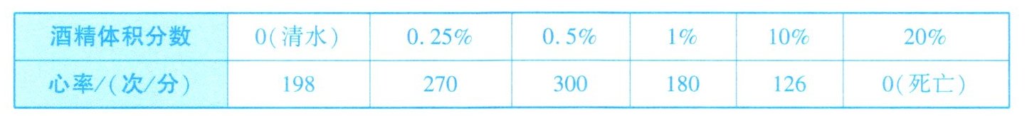 ⑤观察记录不同体积分数的酒精溶液对水蚤心率的影响,实验结果如下表: