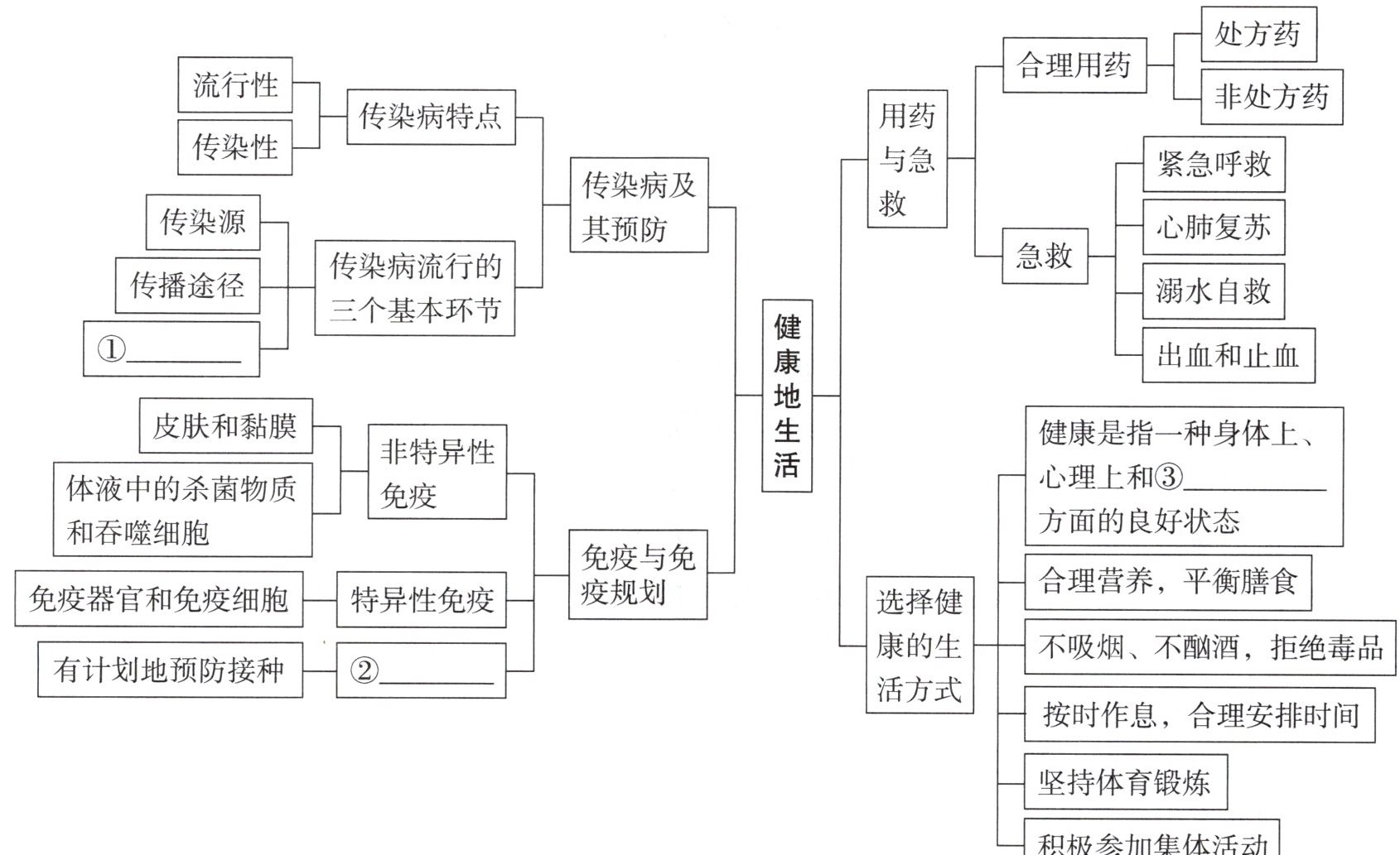2. 人生来就有的,不是针对某种特定的病原体,而是防御多种病原体的防御机制叫作______免疫。人体在出生以后逐渐形成后天防御屏障,它主要针对特定的病原体或异物起作用,因而具有特异性,这种防御机制叫作特异性免疫。