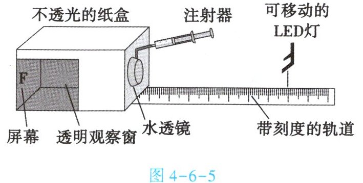 13. 某生物学兴趣小组利用水透镜和其他材料,制作的人体眼球成像模型如图 4 - 6 - 5 所示。据图回答下列问题。