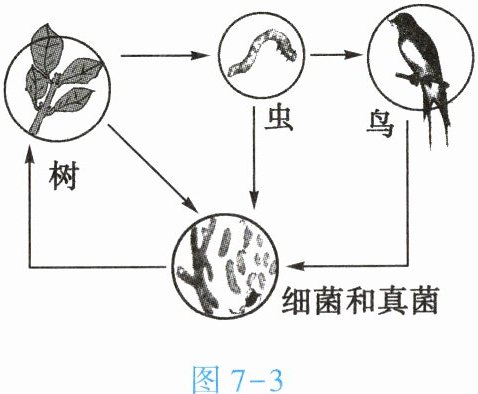 8. 某森林生态系统中,不同生物之间存在的关系如图7-3所示。图中包含的食物链数量为【