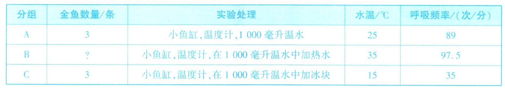 3. 某生物学兴趣小组进行实验探究水温变化对金鱼呼吸频率的影响,实验过程及结果如下表。据表回答下列问题。