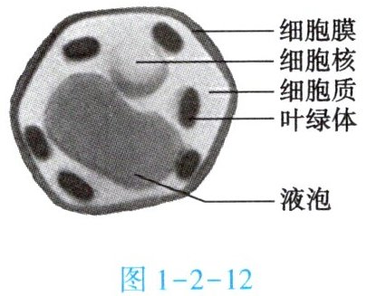 13. 小慧学习关于细胞的内容时,在老师的指导下她用不同颜色的橡皮泥制作出了洋葱鳞片叶内表皮细胞模型(如图 1 - 2 - 12 所示)。回答下列问题。
