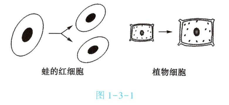 (1) 细胞核由一个分成两个,细胞质分成两份,每份各含有一个______。