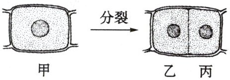 (2) 从图乙看,动植物细胞分裂的过程中,细胞最终一分为二的方式不同。图A是在原细胞中央形成新的细胞膜和细胞壁,将细胞一分为二;图B是______向内凹陷,最后将一个细胞缢裂为两个细胞。若图甲存活的那部分继续发育并分裂产生新细胞,其分裂方式应与图乙中的______(填“A”或“B”)一致。