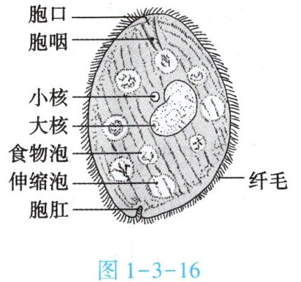 8. 结肠小袋纤毛虫是人体最大的寄生原虫,它的结构与草履虫相似,如图1-3-16所示。下列叙述正确的是【 】