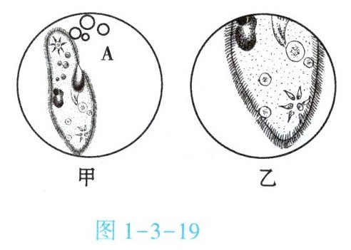2. 用显微镜观察草履虫时,在不更换目镜的情况下,依次观察到如图 1 - 3 - 19 中甲和乙的视野,下列叙述正确的是 【 】