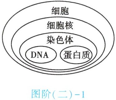 1.染色体是细胞中那些被碱性染料染成深色的物质,由____和____构成,是遗传物质的载体。它们之间的层次关系可用图阶(二)-1表示。