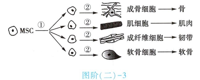 2.(2025·开封)间充质干细胞(MSC)是干细胞家族的重要成员,可在体外培养成多种细胞,如图阶(二)-3所示。下列叙述错误的是【】