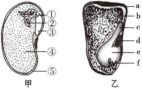 D.图乙中植物的胚由 b、c、d、e 所示部分构成