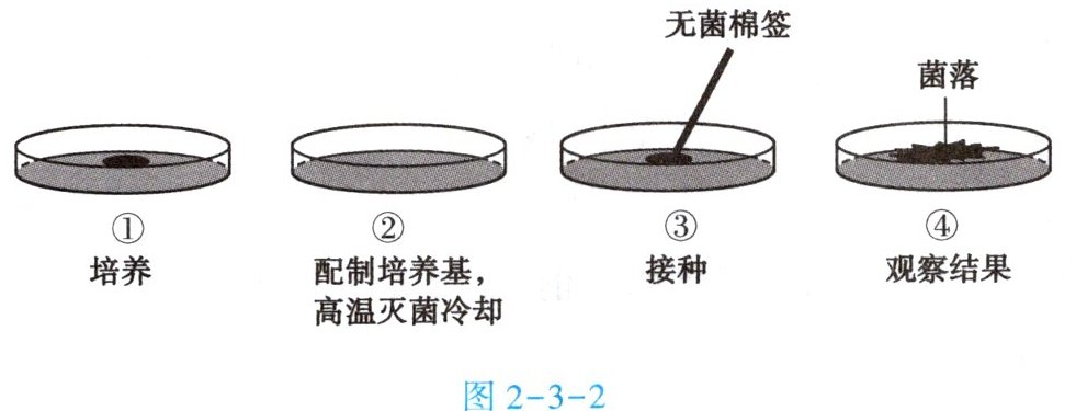 9. 如图2-3-2是“检测环境中的细菌和真菌”的探究实验过程。下列有关该实验操作顺序正确的是【 】
