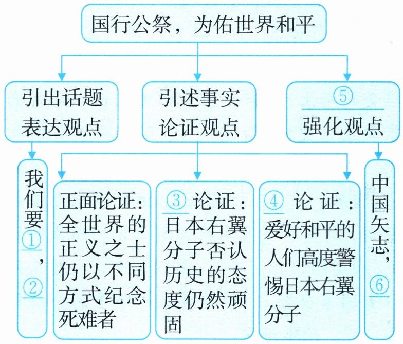 3.①牢记历史 ②维护和平 ③反面 ④正面 ⑤总结全文 ⑥捍卫世界和平