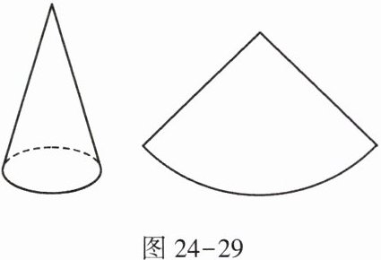 4. (★)如图 24 - 29,已知圆锥侧面展开图的扇形面积为 $65\pi$ cm$^{2}$,扇形的弧长 $13\pi$ cm,则圆锥的母线长是 【