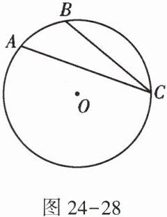2. (★)(2023·抚顺)如图 24 - 28,点 $A$, $B$, $C$ 在 $\odot O$ 上, $\odot O$ 的半径为 $9$, $\overset{\frown}{AB}$ 的长为 $2\pi$,则 $\angle ACB$ 的大小是 【