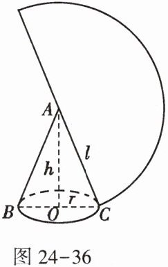 14. (★★)如图 24 - 36,一个圆锥的高为 $3\sqrt{3}$ cm,其侧面展开图是半圆.求: