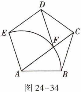 10. (★)如图 24 - 35,分别以正五边形 $ABCDE$ 的顶点 $A$, $D$ 为圆心,以 $AB$ 长为半径画 $\overset{\frown}{BE}$, $\overset{\frown}{CE}$.若 $AB = 1$,则阴影部分图形的周长为