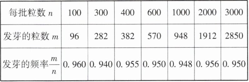 则绿豆发芽的概率估计值(结果保留小数点后两位)是【