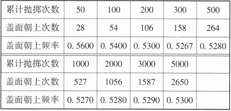 11. (★★)某学习小组做抛掷一枚瓶盖的试验,整理的试验数据如下表: