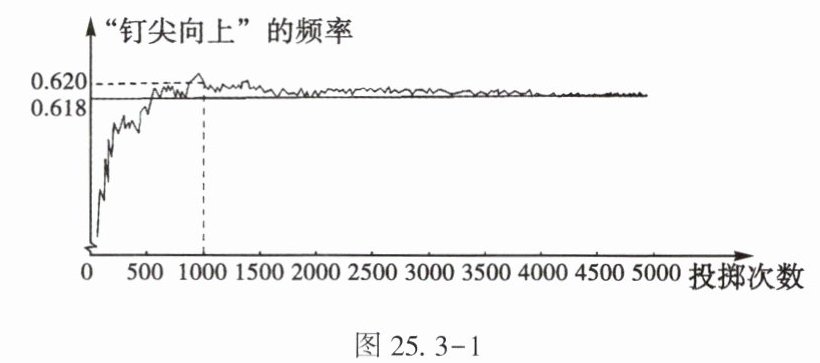 7. (★) 图 25.3-1 显示了用计算机模拟随机投掷一枚图钉的某次试验的结果.