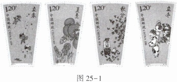 12. (★★)“二十四节气”是中华上古农耕文明的智慧结晶,被国际气象界誉为“中国第五大发明”.小文购买了“二十四节气”主题邮票,他要将“立春”“夏至”“秋分”“立冬”四张邮票(图25 - 1)中的两张送给好朋友小乐.小文将它们背面朝上放在桌面上(邮票背面完全相同),让小乐从中随机抽取一张(不放回),再从中随机抽取一张,则小乐抽到的两张邮票恰好是“立春”和“夏至”的概率是【