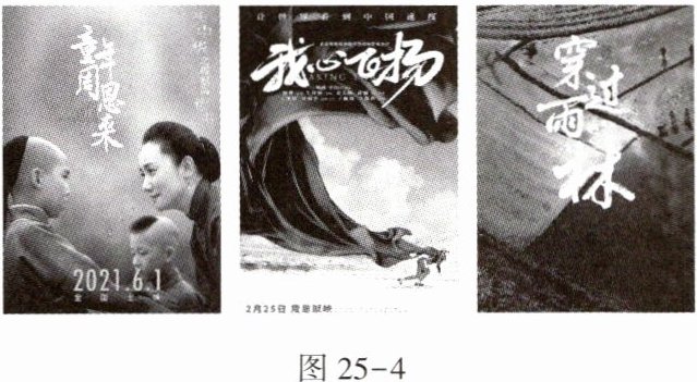 17. (★★) (2023·河南)为落实教育部办公厅、中共中央宣传部办公厅关于《第41批向全国中小学生推荐优秀影片片目》的通知精神,某校七、八年级分别从如图25 - 4所示的三部影片中随机选择一部组织本年级学生观看,则这两个年级选择的影片相同的概率为【