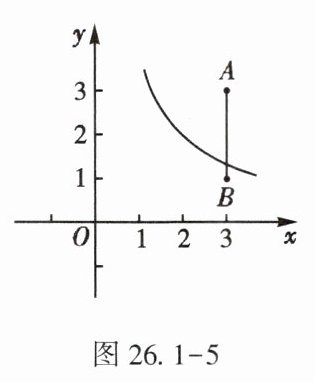 12. (★★)(2023·河北)如图 26.1 - 5,已知点 $ A(3, 3) $, $ B(3, 1) $,反比例函数 $ y = \frac{k}{x}(k \neq 0) $ 图象的一支与线段 $ AB $ 有交点,写出一个符合条件的 $ k $ 的整数值: