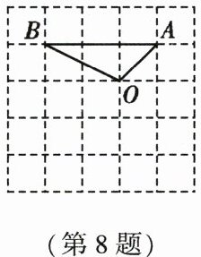 8. 如图,在$5× 5$的网格中,每个小正方形的边长均为$1$,点$A$,$B$,$O$都在格点上. 若将$\triangle OAB绕点O逆时针旋转90^{\circ}$,得到$\triangle OA'B'$,$A$,$B的对应点分别为A'$,$B'$,则$A$,$B'$之间的距离为 (