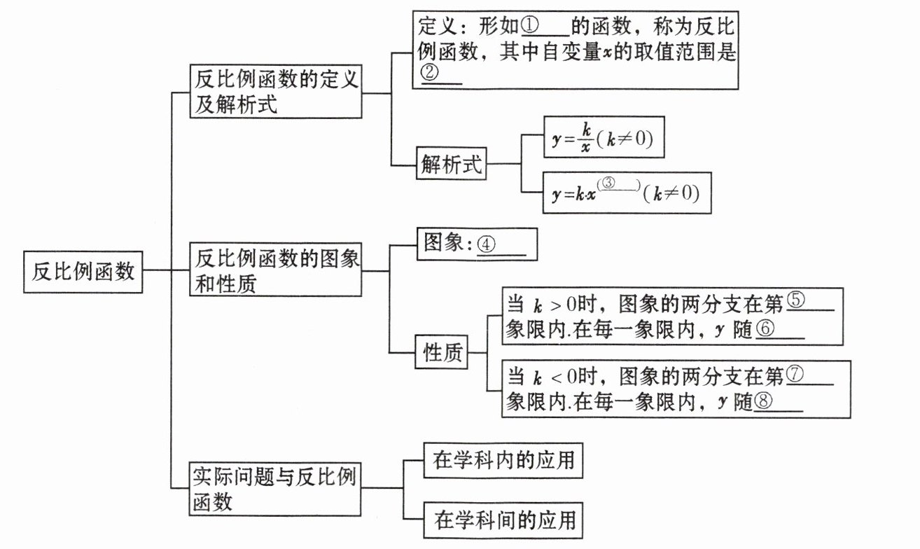 1. ①:$y = \frac{k}{x}(k\neq0)$;