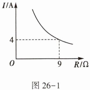 8. (★)(2023 · 西宁)已知蓄电池的电压恒定,使用蓄电池时,电流$I$(单位:A)与电阻$R$(单位:$\Omega$)是反比例函数关系,它的图象如图26 - 1所示,如果以此蓄电池为电源的用电器,流过的电流是$2A$,那么此用电器的电阻是