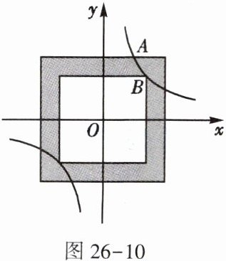 21. (★★)(2021 · 河南)如图26 - 10,大、小两个正方形的中心均与平面直角坐标系的原点$O$重合,边分别与坐标轴平行,反比例函数$y= \frac{k}{x}的图象与大正方形的一边交于点A(1,2)$,且经过小正方形的顶点$B$。