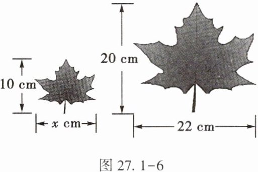 5. (★)秋天红透的枫叶,总能牵动人们无尽的思绪,所以诗人杜牧说“停车坐爱枫林晚,霜叶红于二月花”。图27.1 - 6是两片形状相同的枫叶图案,则$x$的值为
