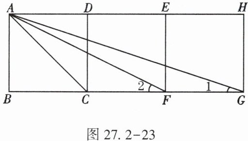 12. (★★)如图27.2 - 23,四边形$ABCD$、四边形$CDEF$、四边形$EFGH$都是正方形.