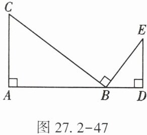 12. (★★)(2023·邵阳)如图27.2-47,CA⊥AD,ED⊥AD,B是线段AD上的一点,且CB⊥BE.已知AB= 8,AC= 6,DE= 4.