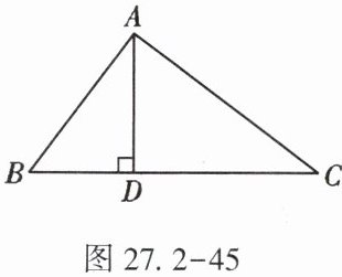 9. (★★)(2023·湘潭)如图27.2-45,在Rt△ABC中,∠BAC= 90°,AD是斜边BC上的高.