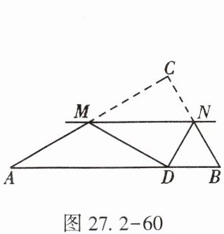 14. (★★) 如图 27.2 - 60,在 $ \triangle ABC $ 中,$ \angle C = 90° $,将 $ \triangle ABC $ 沿直线 $ MN $ 翻折后,顶点 $ C $ 恰好落在 $ AB $ 边上的点 $ D $ 处,已知 $ MN // AB $,$ MC = 6 $,$ NC = 2\sqrt{3} $,则四边形 $ MABN $ 的面积是