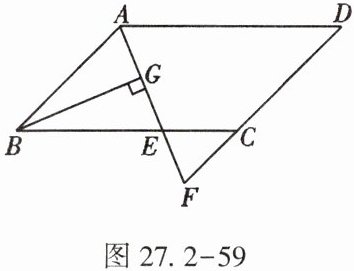 13. (★★) 如图 27.2 - 59,在 $ □ ABCD $ 中,$ AB = 6 $,$ AD = 9 $,$ \angle BAD $ 的平分线交 $ BC $ 于点 $ E $,交 $ DC $ 的延长线于点 $ F $,$ BG \perp AE $ 于点 $ G $,$ BG = 4\sqrt{2} $,则 $ \triangle EFC $ 的周长为【