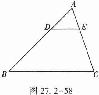 11. (★) 如图 27.2 - 58,在 $ \triangle ABC $ 中,$ DE // BC $,$ DE $ 分别与 $ AB $,$ AC $ 相交于点 $ D $,$ E $,若 $ AD:AB = 1:3 $,$ DE = 2 $,则 $ BC = $