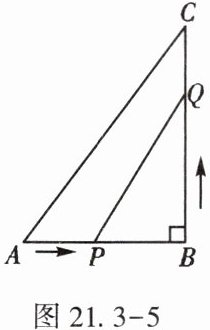 8. (★★★)如图 21.3 - 5,在 $\triangle ABC$ 中,$\angle B = 90^{\circ}$,$AB = 5$ cm,$BC = 7$ cm。点 $P$ 从点 $A$ 开始沿 $AB$ 边向点 $B$ 以 1 cm/s 的速度移动,点 $Q$ 从点 $B$ 开始沿 $BC$ 边向点 $C$ 以 2 cm/s 的速度移动。当 $P$,$Q$ 两点中有一点到达终点时,则同时停止运动。