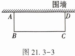 6. (★★)如图 21.3 - 3,邻边不等的矩形花圃 $ABCD$,它的一边 $AD$ 利用已有的围墙(围墙足够长),另外三边所围的栅栏的总长度是 6 m。若矩形的面积为 4 m^2,则 $AB$ 的长度是