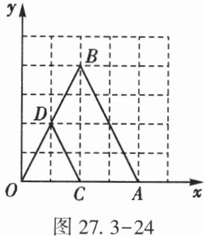 14. (★)(2022·黔西南)如图 27.3 - 24,在平面直角坐标系中,$\triangle OAB与\triangle OCD$位似,位似中心是坐标原点$O$. 若点$A(4,0)$,点$C(2,0)$,则$\triangle OAB与\triangle OCD$周长的比值是