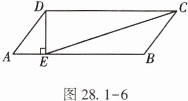 17. (★★★) (2021·广东) 如图 28.1 - 6,在 $ □ ABCD $ 中,$ AD = 5 $,$ AB = 12 $,$ \sin A = \frac{4}{5} $。过点 $ D $ 作 $ DE \perp AB $,垂足为 $ E $,则 $ \sin \angle BCE = $
