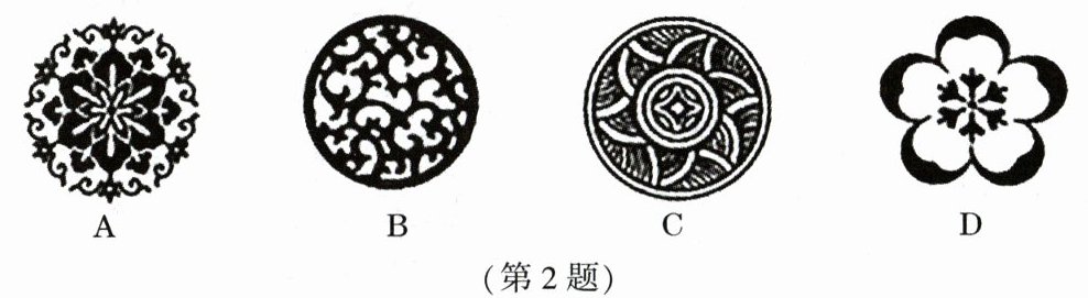 2. 窗花是贴在窗子或窗户上的剪纸,是中国古老的传统民间艺术之一.下列窗花作品既是轴对称图形又是中心对称图形的是 (