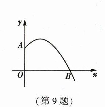 9. 某广场有一个小型喷泉,水流从垂直于地面的水管 $ O A $ 喷出,$ O A $ 长为 1.5 m.水流在各个方向上沿形状相同的抛物线路径落到地面上,某方向上抛物线路径的形状如图所示,落点 $ B $ 到 $ O $ 的距离为 3 m.建立平面直角坐标系,水流喷出的高度 $ y $(单位:m)与水平距离 $ x $(单位:m)之间近似满足函数关系式 $ y = a x ^ { 2 } + x + c ( a \neq 0 ) $,则水流喷出的最大高度为 (