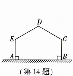 14. 用长为 12 m 的篱笆,一边利用足够长的墙围出一块苗圃.如图,围出的苗圃是五边形 $ A B C D E $, $ A E \perp A B $, $ B C \perp A B $, $ \angle C = \angle D = \angle E $.设 $ C D = D E = x $ m,五边形 $ A B C D E $ 的面积为 $ S \mathrm { m } ^ { 2 } $,则 $ S $ 的最大值为