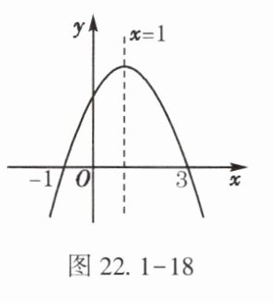 8. (★★)已知二次函数 $ y = ax^{2} + bx + c(a \neq 0) $ 的图象如图 22.1 - 18 所示,给出以下结论:① $ a > 0 $;②该函数的图象关于直线 $ x = 1 $ 对称;③当 $ x = -1 $ 或 $ x = 3 $ 时,函数 $ y $ 的值都等于 0. 其中正确结论的个数是【 】